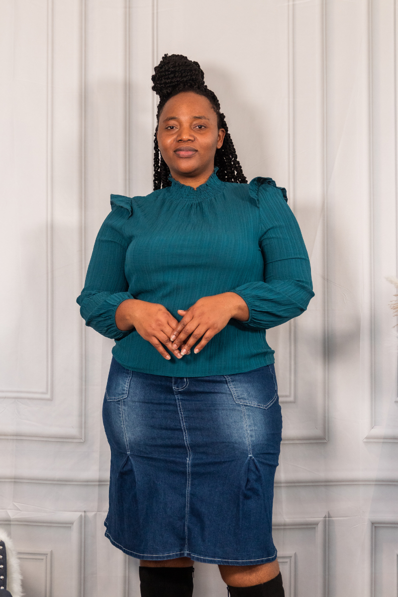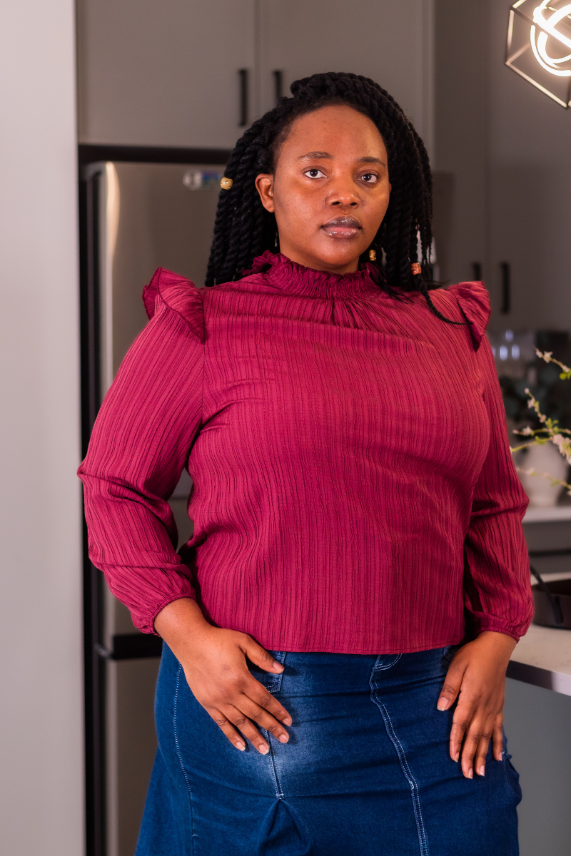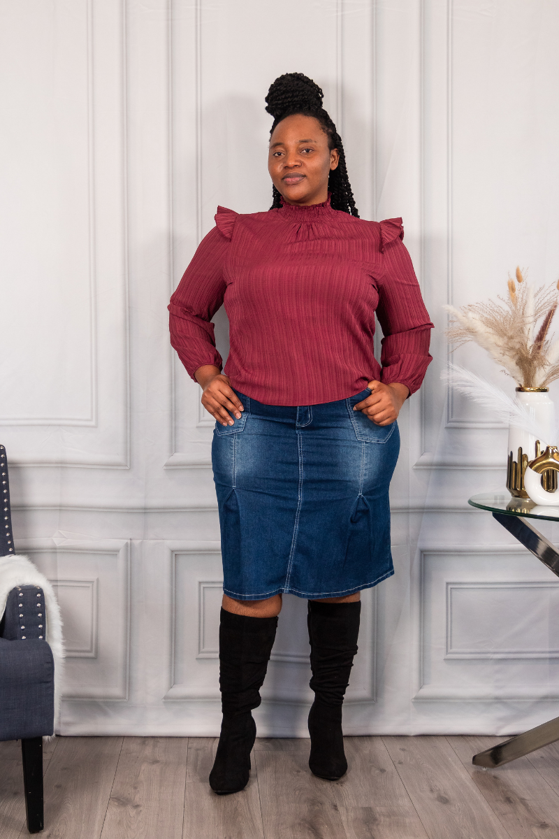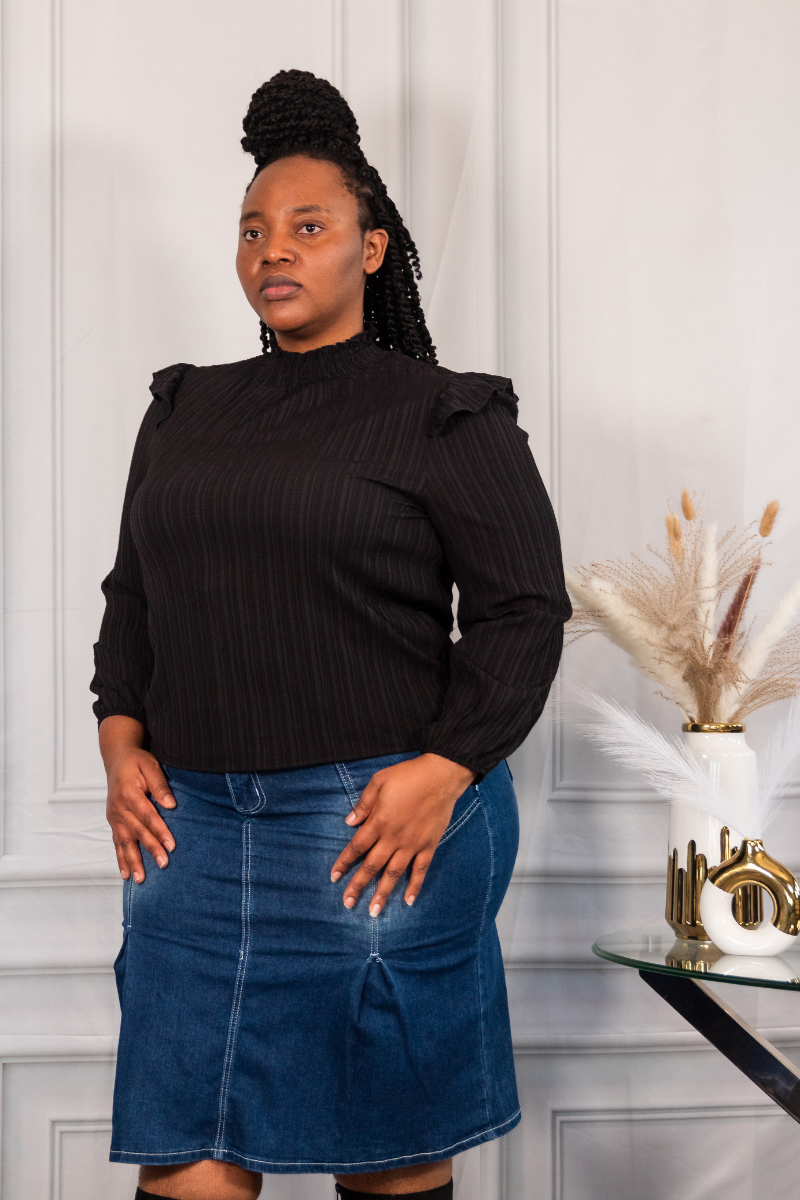 The Sophia Ruffle Blouse is a timeless piece that merges elegance with subtle detailing. Crafted with a textured fabric, it features a high neckline adorned with delicate ruffles and soft shoulder accents that elevate its charm. Its classic silhouette makes it versatile for both workday refinement and evening sophistication. Pair it effortlessly with skirts or denim for a polished yet comfortable look.